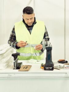 Setting up the booth was much more than a logistical task; it was the beginning of a dream. We faced an empty space, a cold floor, and blank walls that, within hours, needed to become the presentation of our technology. Every box we opened, every tool we placed, was one more step toward the goal. We had made it this far, and we were determined to make every minute count.