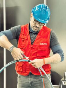 Live demonstrations were the big success of the day. Not only did they capture the attention of attendees at the fair, but on the fly, we decided to record them and stream them live. We wanted more people to see in real time how the system projects resin with millimeter precision inside the pipe. Every time we explained how it works without cutting, opening, or breaking… we saw faces of amazement — even through the screen.